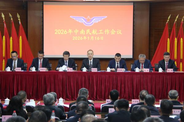 1月16日,2026年中南民航工作会议在广州召开。会议传达学习了全国民航工作会议和全国民航航空安全工作会议精神,总结中南民航2025年工作,分析辖区发展形势,谋划“十五五”工作思路,部署2026年重点任务,并对2026年中南民航春运工作提出要求。会议由聂建雄书记主持,李双臣局长作了题为《严守安全底线 护航“十五五”开局 奋力谱写交通强国建设中南民航新篇章》的工作报告。